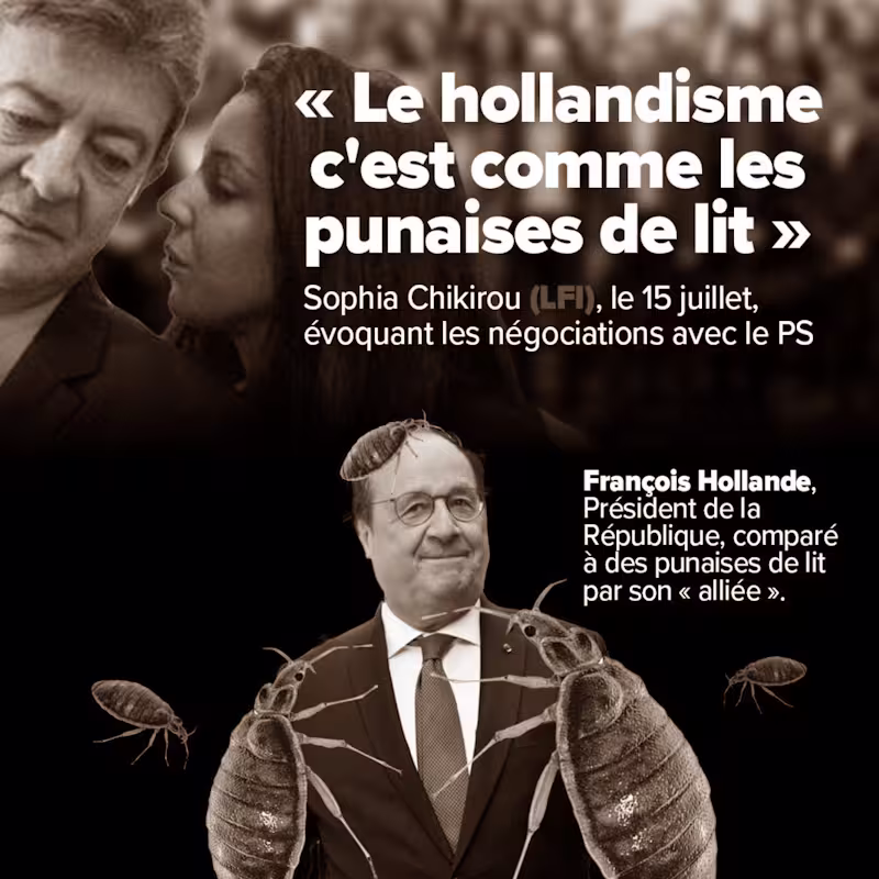 En pleine discussion pour le choix d'un Premier Ministre du "Nouveau Front Populaire", il avait avancé le nom de Laurence TUBIANA, qui était une de ses soutiens lors de l'heureuse élection présidentielle de 2012. En la personne de la maîtresse et favorite officielle du "Lider Maximo", Sophia CHIKIROU, LFI lui a courtoisement rétorqué, sur "X" le 14 Juillet, en ces termes élégants et enjoués :