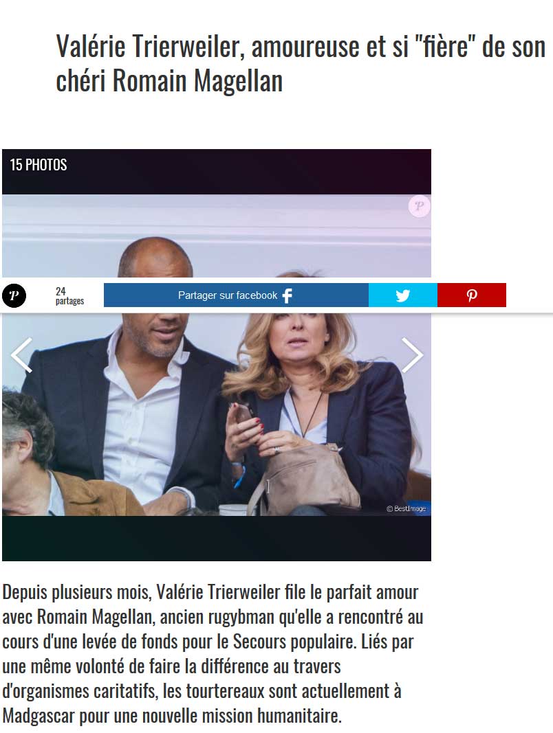 Mais là, un pallier définitif est franchi : non pas que Valérie TRIERWEILLER, la Madone et l'Incarnation des causes Bobos - LGBT dans le pays, la copine inconsolable de Pierre BERGE, fut à nouveau en couple après avoir été jetée comme une merde indigne par le Don-Juan fripé. Mais plutôt qu'elle le fut avec Romain MAGELLAN, un rugbyman professionnel, athlète magnifique (1m92 pour 120 kgs de muscle), aux étonnants yeux vert émeraude, qui présente deux caractéristiques :